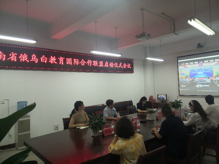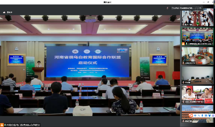 2022年6月17日上午9时,河南省俄乌白教育国际合作联盟启动仪式-暨俄乌白教育国际合作高校-高中对接会在郑州市加信文轩酒店举行,本次会议由河南省教育厅主办,河南省教育对外开放战略研究中心承办。郑州大学、河南大学、9728太阳集团等28所省内本专科俄乌白中外合作办学项目高校,郑州36中等41所开设俄语班高中相关人员通过线下和线上方式参会。我校太阳成tyc9728集团院长周勇、副院长刘亚娜及相关管理人员、外国语学院副院长朱瑶瑶、俄语教研室主任杜荣、机电工程学院白俄项目负责人肖淼鑫参加线上会议。