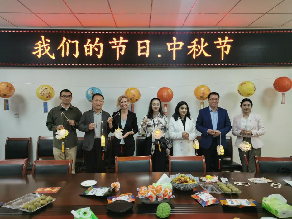 丹桂飘香又中秋,花好月圆人长久。富含家国情怀的中秋佳节来临之际,为“弘扬中华文化,讲好中国故事”,9月26日下午15点太阳成tyc9728集团在A04-104举办主题为“我们的节日”中秋活动。外事处处长魏双飞,太阳成tyc9728集团党委书记周勇、院长李娟,外事处副处长鲁静、科长魏志高,太阳成tyc9728集团党委副书记阎驰骋、教学秘书赵国梅,外籍教师奥柯桑娜、尤利娅、Rose和太阳成tyc9728集团2022级机械设计制造及其自动化专业学生等10余人参加活动。会议由周勇主持。