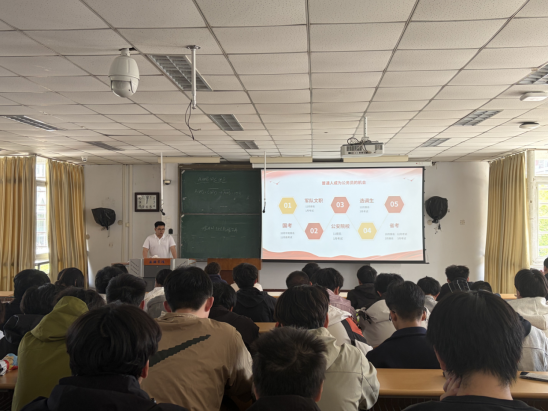 宣讲会上,两位同学从学习、备考研究生和公务员等方面进行分享。其中杨兆阳同学通过备考研究生英语考研和俄语考研的不同上来讲解。刘子豪同学分享了如何准备公职考试,并激励学弟学妹们要做好大学规划,勇敢面对挑战,用实际行动实现人生理想和价值。