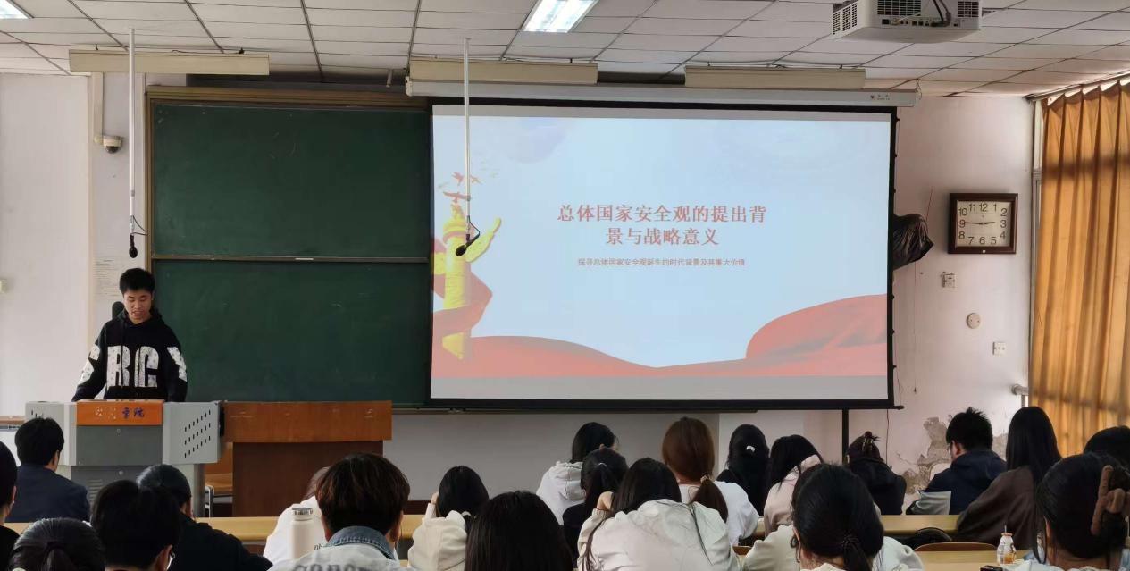 二是以主题班会为载体,实现安全教育全覆盖。4月中旬,学院各专业班级以“国安在心,你我同行”为主题,集中召开国家安全教育主题班会。各班围绕国家安全基本常识、危害国家安全行为及法律后果、维护国家安全途径等核心内容展开深入研讨,通过案例剖析、视频教学等生动易懂的形式,结合网络安全、宗教安全等重点领域,从学生日常生活实际出发,详细讲解校园中可能存在的国家安全风险点,让同学们直观认识到维护国家安全的重要性。同时,学院组织全体学生通过中国大学生在线平台,观看“千万师生同上一堂国家安全教育课”主题公开课,课程覆盖政治安全、网络安全、生态安全等16个重点领域,全面普及国家安全知识。课后各班级同步开展专题研讨,让同学们交流学习心得、分享感悟体会,有效深化了线上线下融合的学习效果。